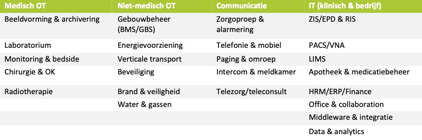 Communicatiesystemen, zoals Verpleegoproepsystemen (VOS), alarmering en systemen die gebruikt worden voor digitale consulten zijn cruciaal voor het zorgproces. Ditzelfde geldt uiteraard voor een systeem als het Elektronisch Patiëntendossier (EPD) en de beschikbaarheid van de werkplek waarmee zorgprofessionals alle systemen gebruiken.