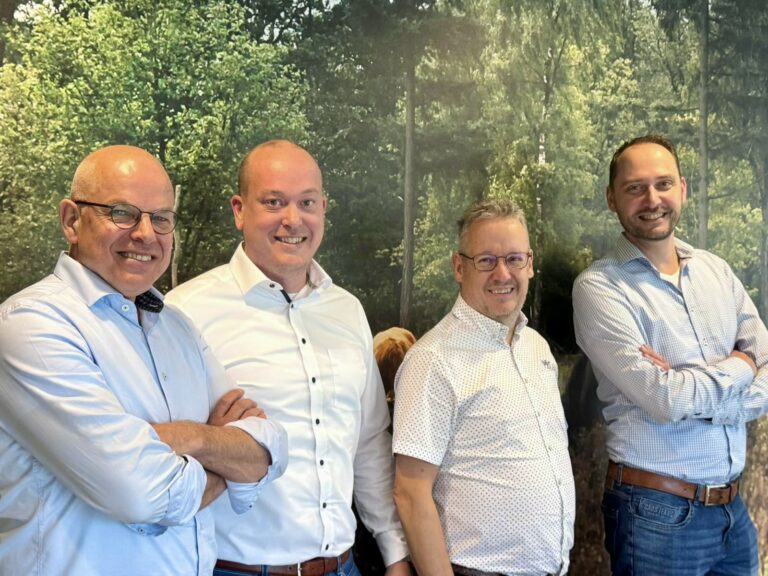Foto vlnr: Louis Poulussen, Operationeel Manager MICT, Bernhoven | Jeffrey den Oudsten, Fidoa | Marc Roozen, CIO, Bernhoven | Sjoerd Klein Overmeen, Fidoa.